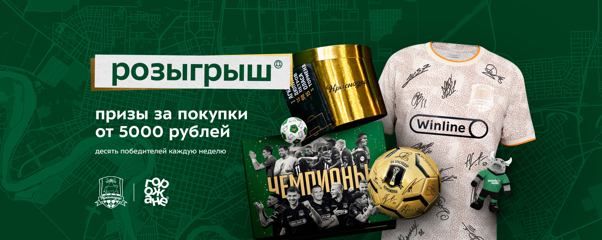 - Соверши единоразовую покупку в интернет-магазине ФК «Краснодар» на сумму от 5000 рублей.